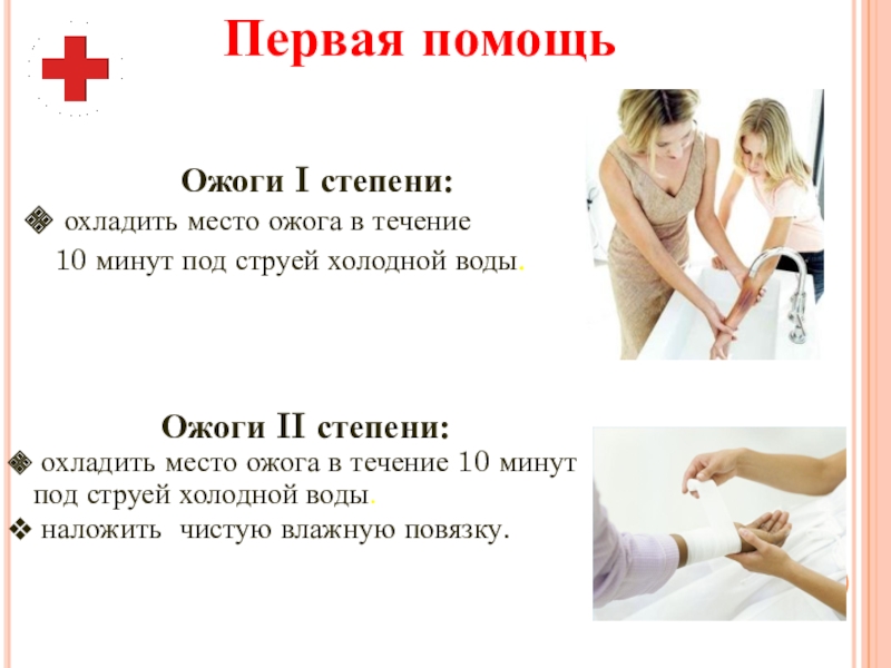охладить место ожога в течение 10 минут под струей холодной воды.