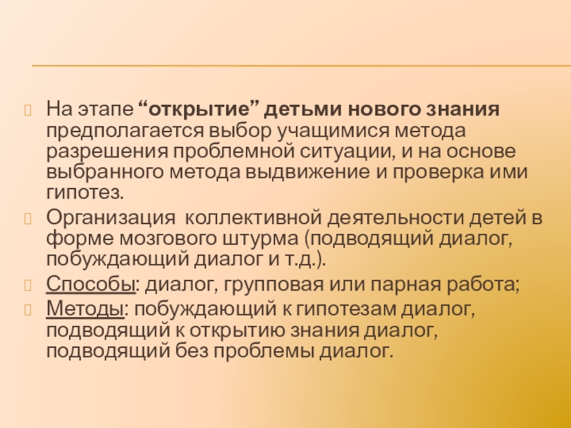 Слайд 22На этапе “открытие” детьми нового знания предполагается выбор учащимися метода разрешения