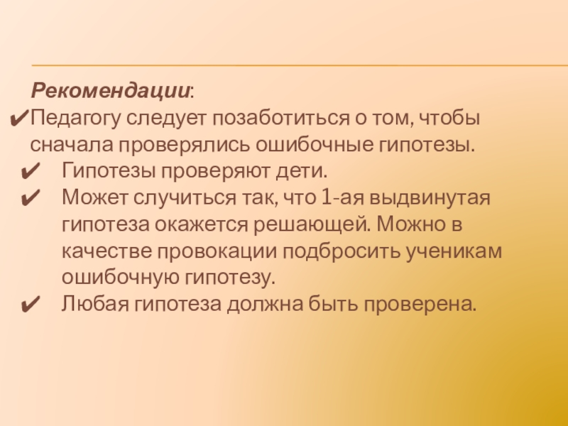 Педагогу следует позаботиться о том, чтобы сначала проверялись ошибочные гипотезы.
