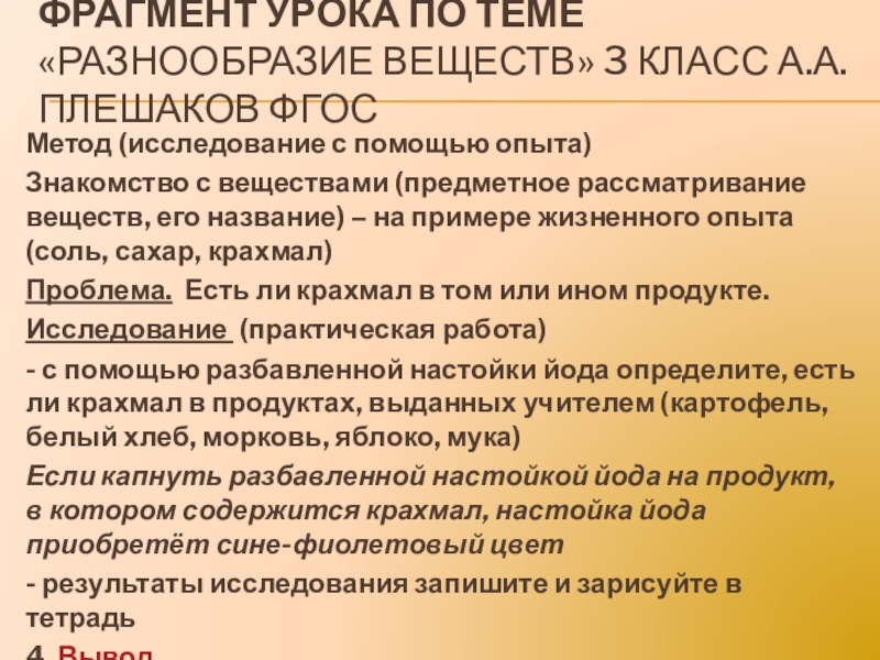 Слайд 15Фрагмент урока по теме «Разнообразие веществ» 3 класс А.А.Плешаков ФГОС