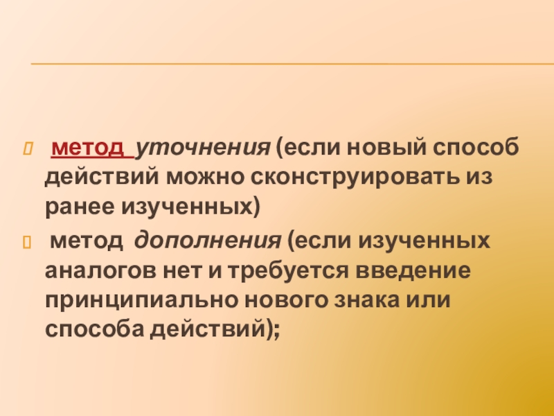 метод дополнения (если изученных аналогов нет и требуется введение принципиально нового знака или способа действий);