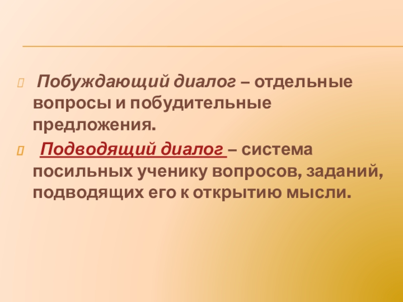 Слайд 16 Побуждающий диалог – отдельные вопросы и побудительные предложения.