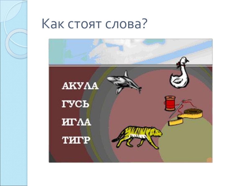– значки, как бойцы на парад, В строгом порядке построены в ряд, Каждый в условленном месте стоит И называется …