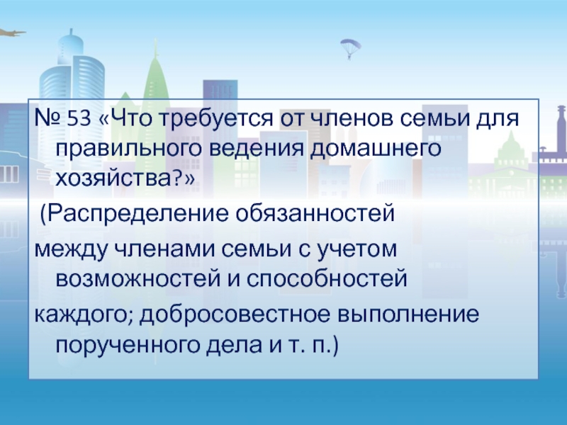 Слайд 7№ 53 «Что требуется от членов семьи для правильного ведения домашнего