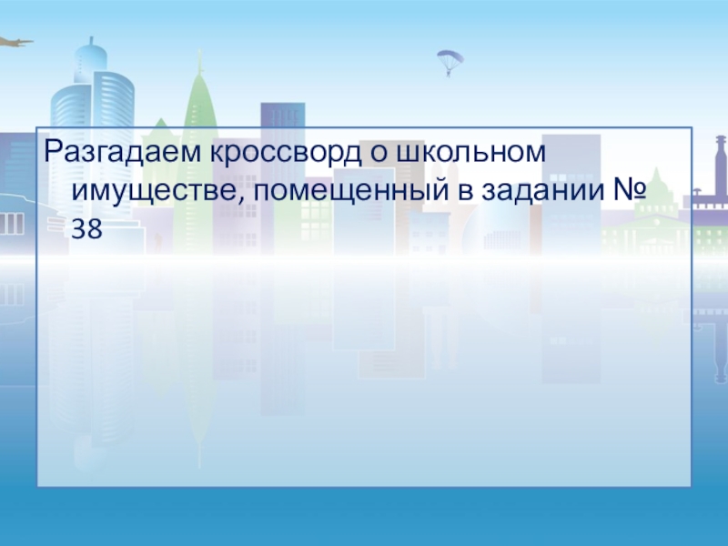 Слайд 6Разгадаем кроссворд о школьном имуществе, помещенный в задании № 38