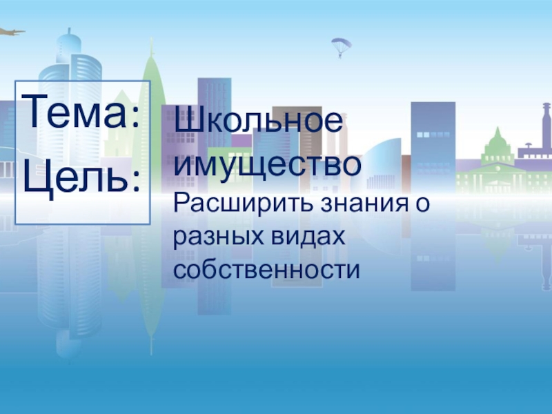 Тема:Цель: Школьное имуществоРасширить знания о разных видах собственности