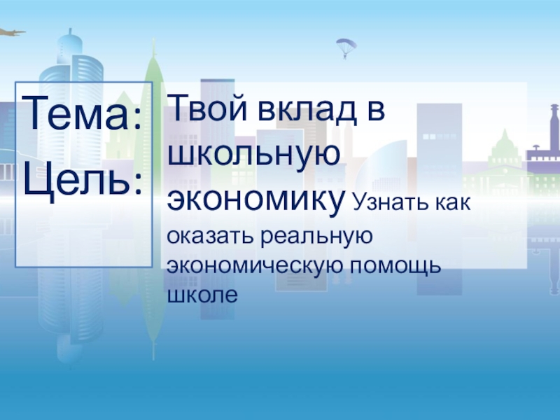 Тема:Цель: Твой вклад в школьную экономику Узнать как оказать реальную экономическую помощьшколе