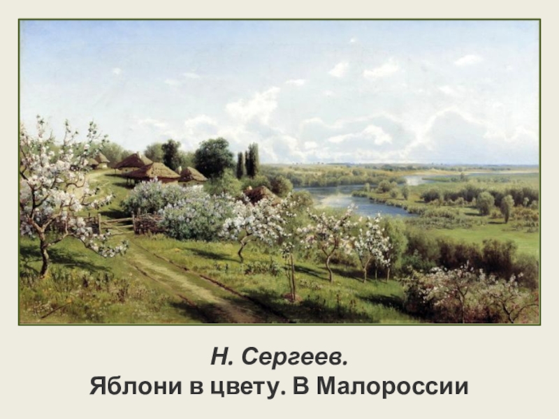 Слайд 2Н. Сергеев. Яблони в цвету. В Малороссии