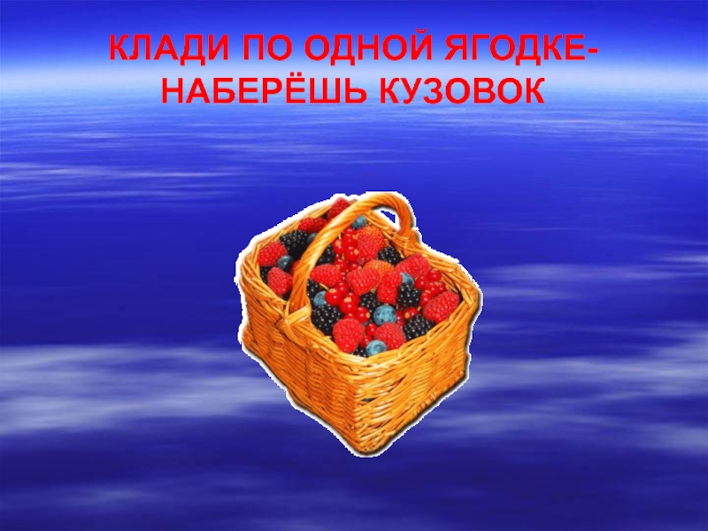 Слайд 9КЛАДИ ПО ОДНОЙ ЯГОДКЕ- НАБЕРЁШЬ КУЗОВОК