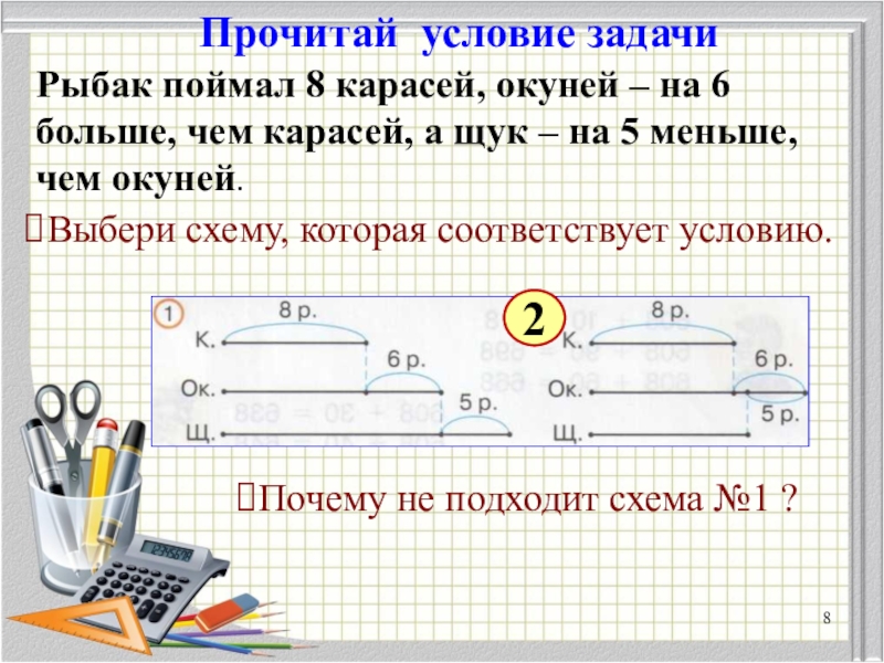 3) 8 + 14 = 22 (р.) – караси и окуни