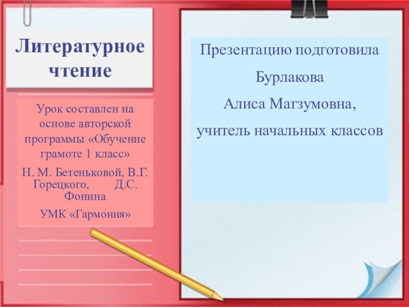 Н. М. Бетеньковой, В.Г.Горецкого, Д.С. Фонина