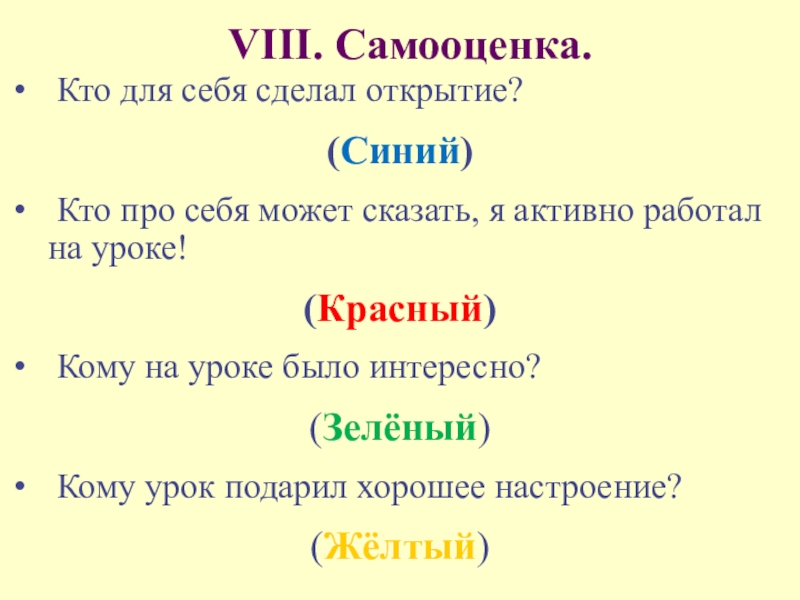 VI. Закрепление.