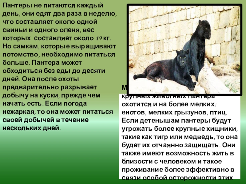 Слайд 18Пантеры меньше членов большой семьи кошек, однако, они могут убить жертву