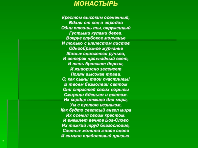 Мона́шество (монахи, монастыри — от греч. μόνος — один, одинокий,μονάζειν — быть одному, жить уединённо, μοναχός, μοναστής — живущий уединённо, μοναστήριον — уединённое жилище), также и́ночество — буквально «уединённое, одинокое жительство».