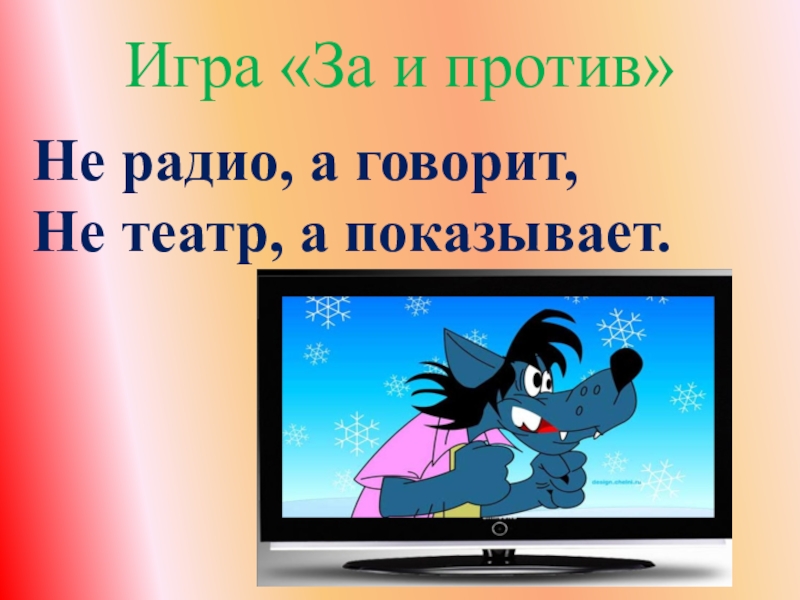 Игра «За и против»Не радио, а говорит,Не театр, а показывает.