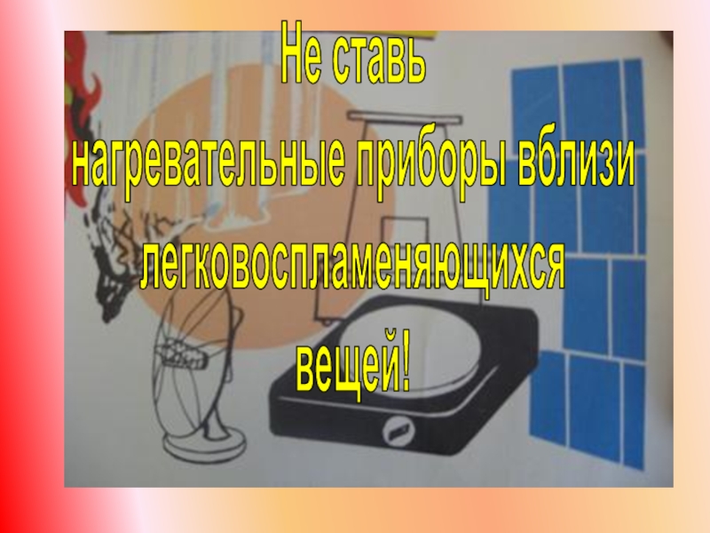 Не ставь нагревательные приборы вблизи легковоспламеняющихся вещей!