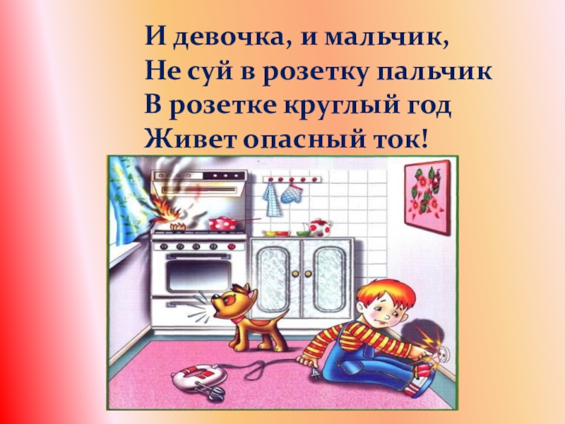 Слайд 14И девочка, и мальчик, Не суй в розетку пальчик В розетке