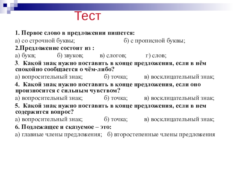 5. Какой знак нужно поставить в конце предложения, если в нем содержится вопрос?