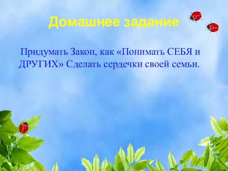 Домашнее задание   Придумать Закон, как «Понимать СЕБЯ и ДРУГИХ» Сделать сердечки своей семьи.