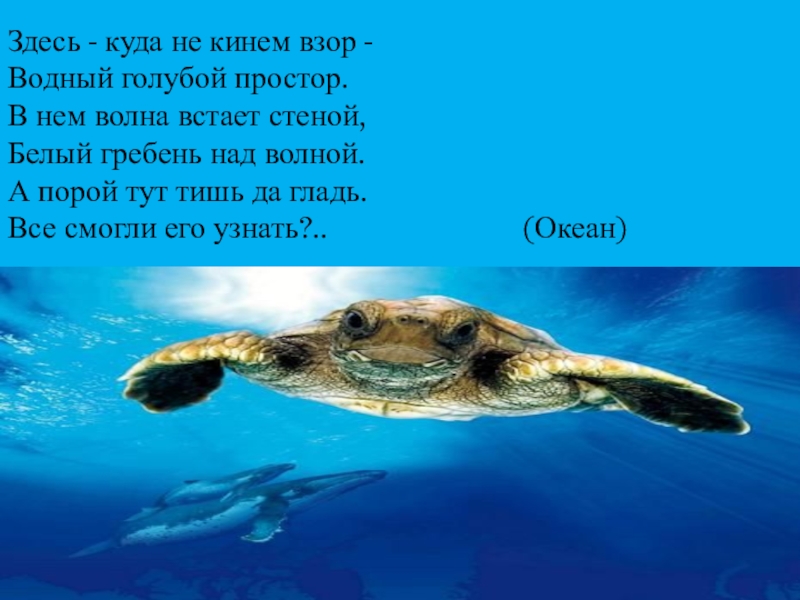 Слайд 3Здесь - куда не кинем взор - Водный голубой простор. В нем волна