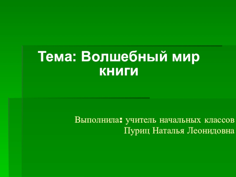 Слайд 1Выполнила: учитель начальных классов Пуриц Наталья Леонидовна
