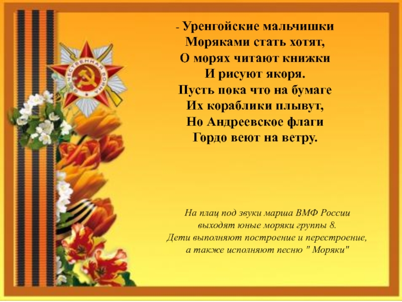 На плац под звуки марша ВМФ России выходят юные моряки группы 8.