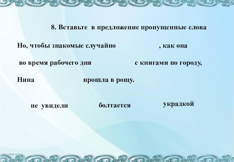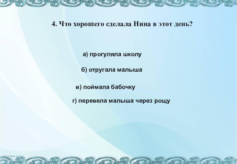 г) она побежала догонять красивую бабочку и наткнулась на малыша
