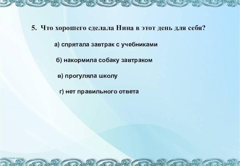 в) не приготовила урока по алгебре и решила не идти в школу.