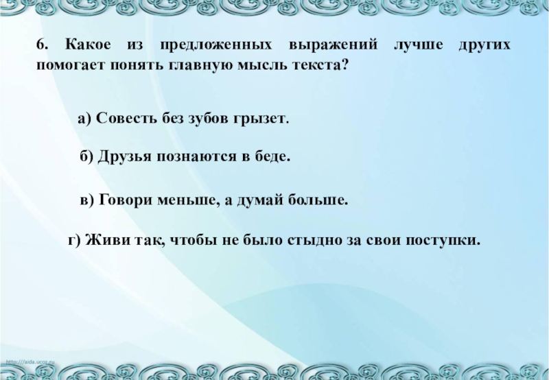 г) Живи так, чтобы не было стыдно за свои поступки.