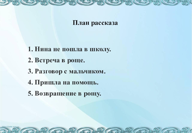 Нина взяла его за руку и повела через рощу. А связка книг и завтрак остались под кустом, потому что поднять их перед малышом было стыдно. Вышмыгнула* из-за ветвей собака и завтрак съела.