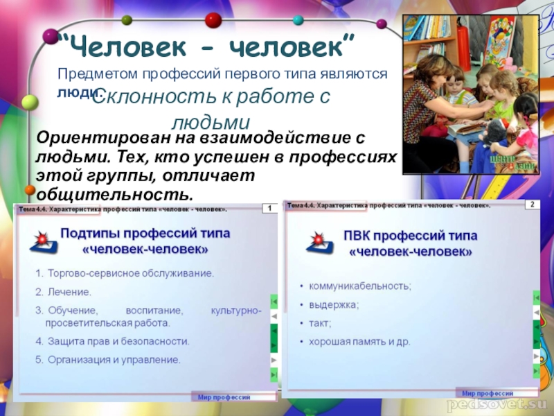 Предметом профессий первого типа являются люди.