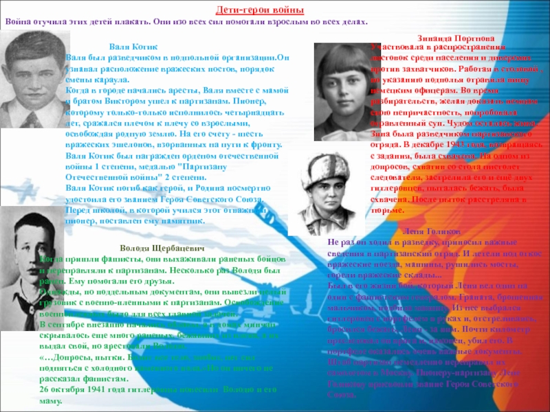 Валя был разведчиком в подпольной организации.Он узнавал расположение вражеских постов, порядок смены караула.