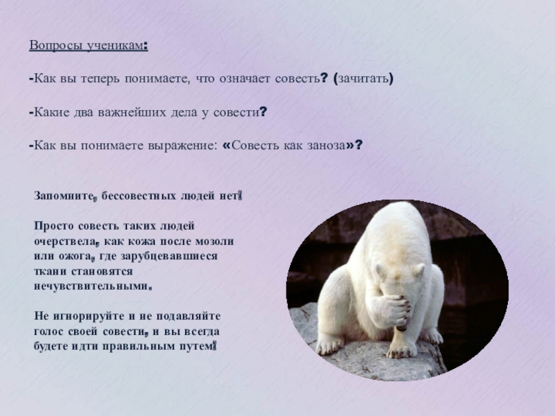 Не игнорируйте и не подавляйте голос своей совести, и вы всегда будете идти правильным путем!