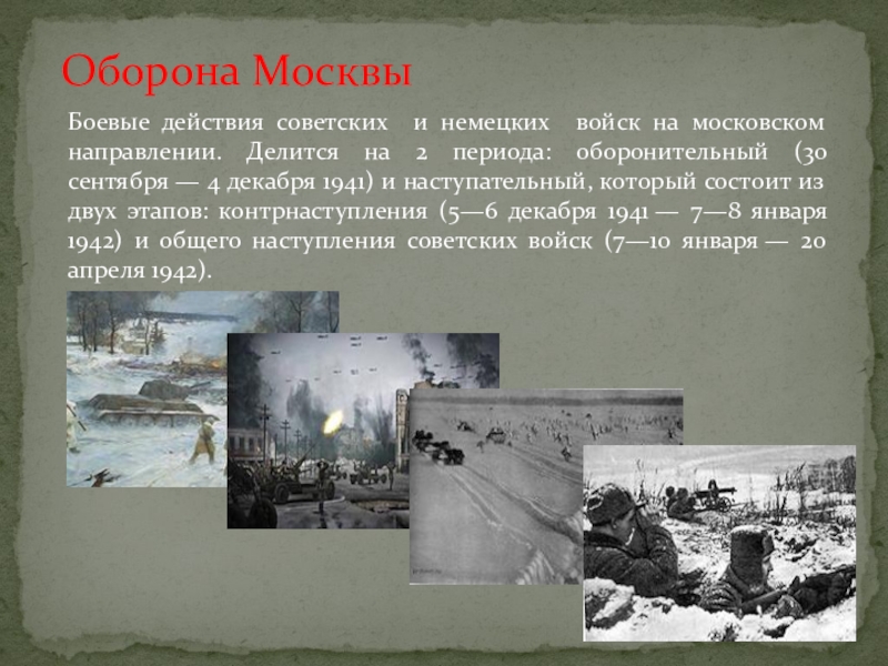 Боевые действия советских и немецких войск на московском направлении. Делится