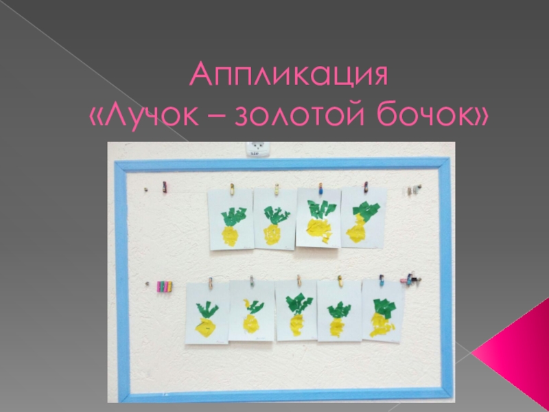 Слайд 13Аппликация «Лучок – золотой бочок»