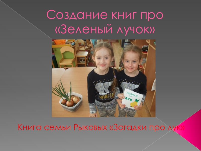 Создание книг про «Зеленый лучок» Книга семьи Рыковых «Загадки про лук»
