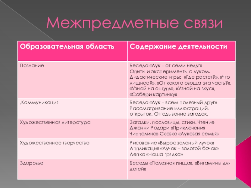 деятельность детей. Сам процесс и результат проекта принес детям удовлетворение, радость переживания, осознания собственных умений. Благодаря проведенной работе наши дети могут ответить на вопрос «Почему необходим лук?» Выход на следующий проект «Выращивание лука в огороде»