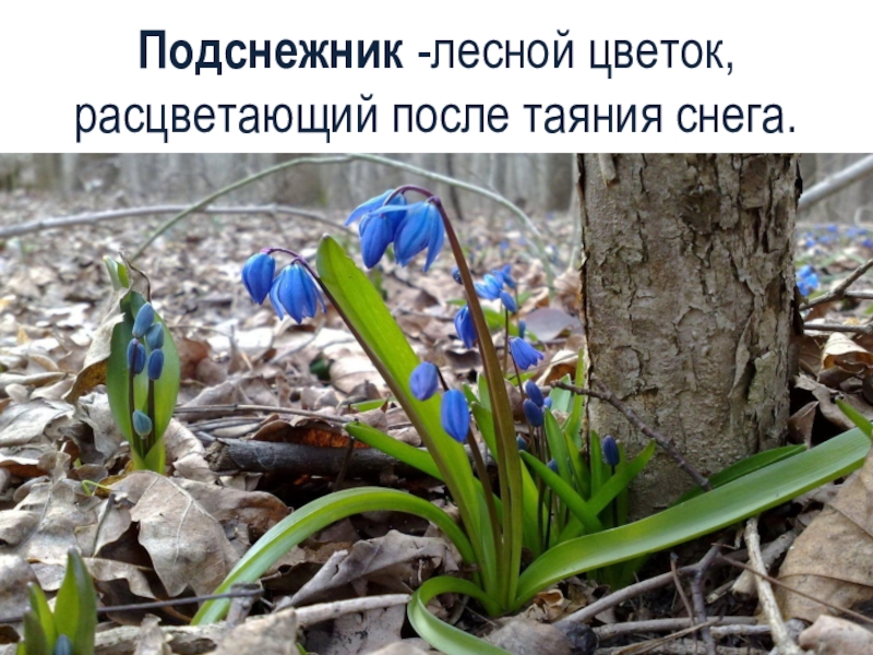 Слайд 13Подснежник -лесной цветок, расцветающий после таяния снега.