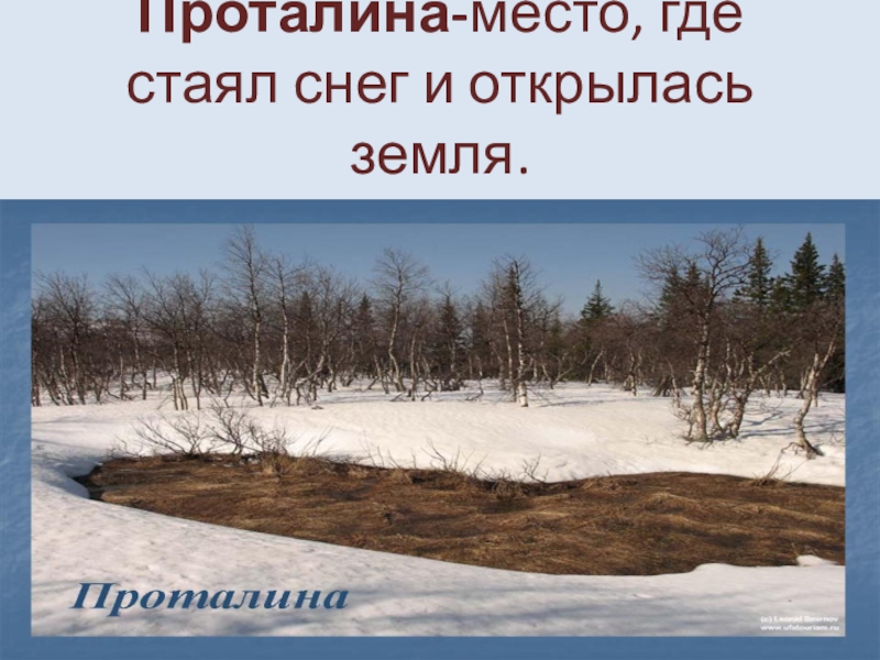 Слайд 10Проталина-место, где стаял снег и открылась земля.