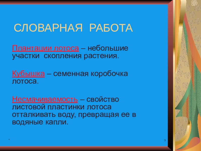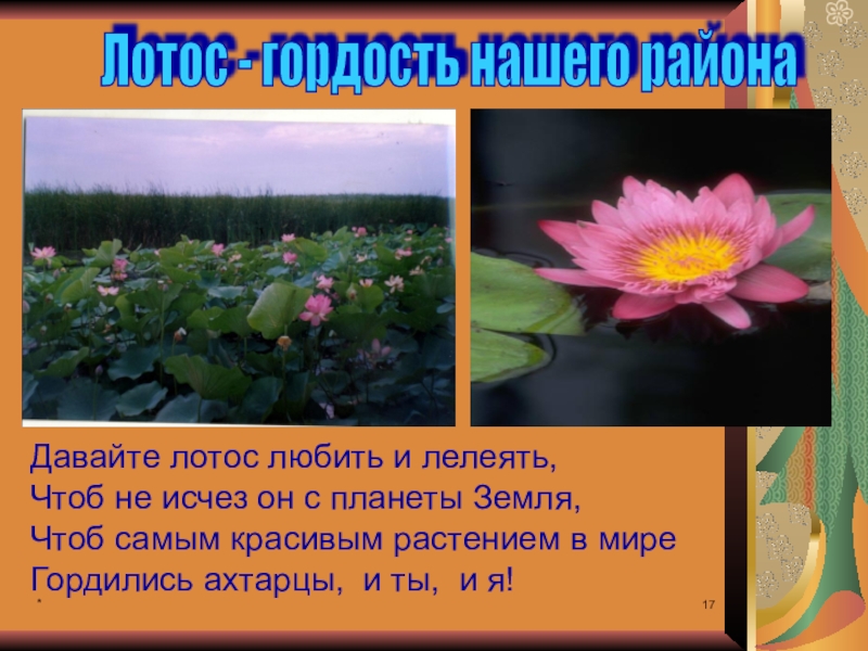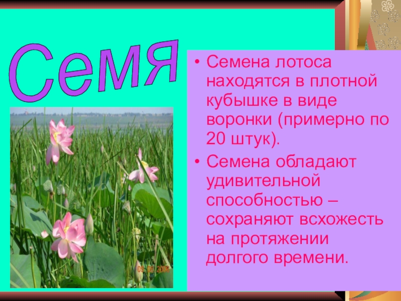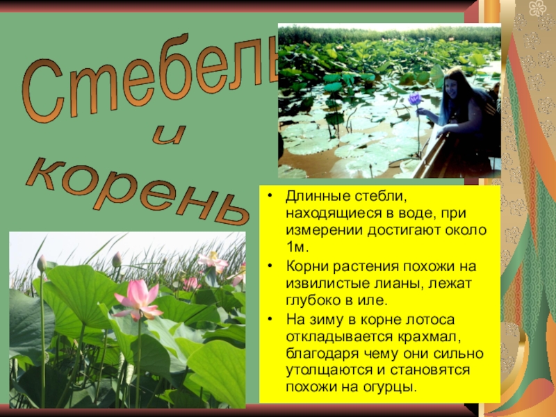 Лотос посвящался богине плодородия Изиде и богу солнца Озирису. «Много лотоса на воде, велико будет плодородие».