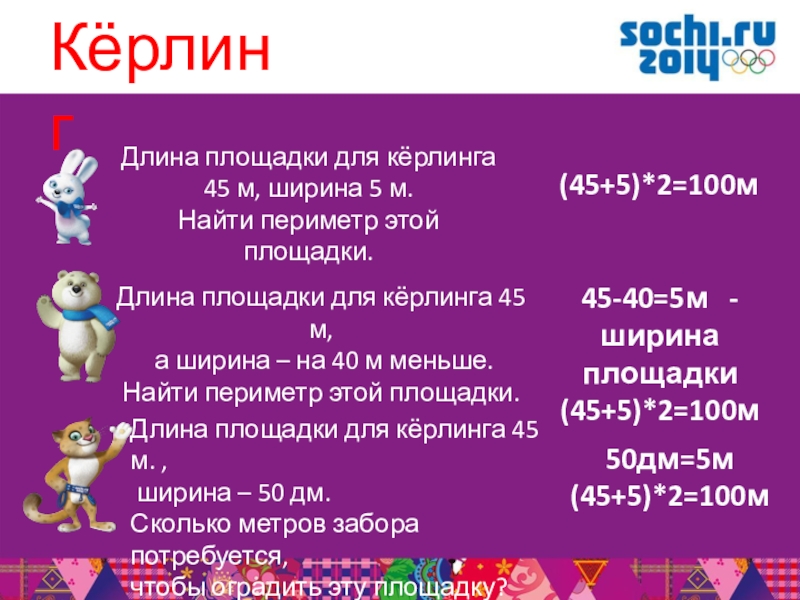Длина площадки для кёрлинга 45 м. ,