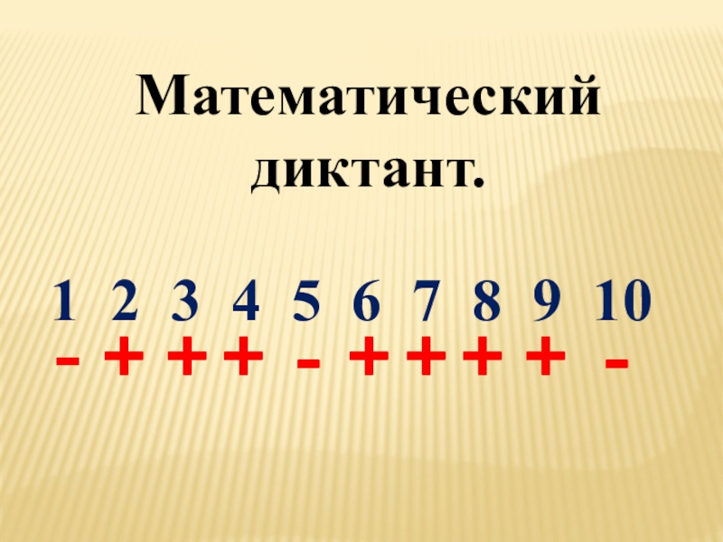 Математический диктант.1 2 3 4 5 6 7 8 9 10-+++-++++-