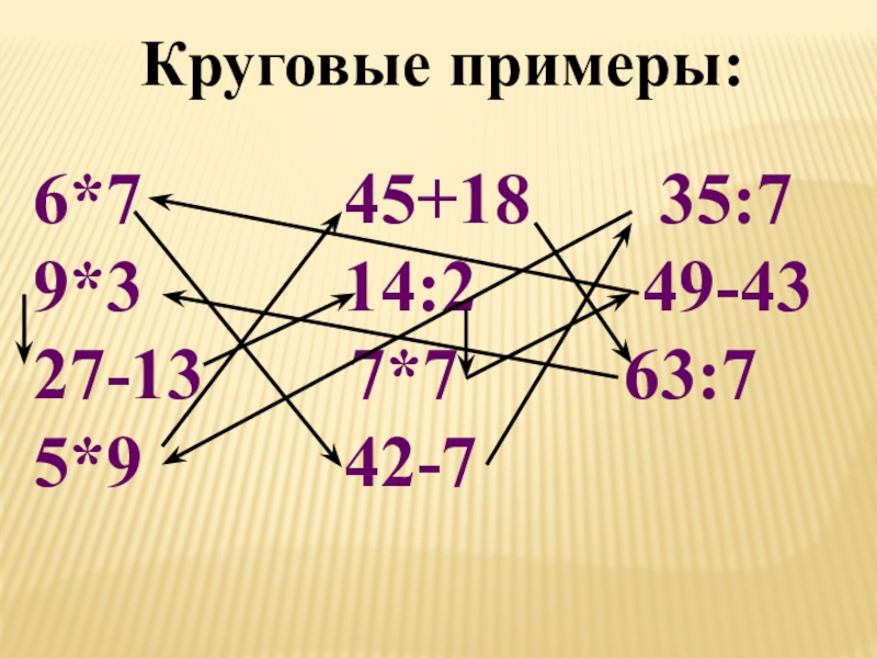 Круговые примеры:6*7      45+18    35:7 9*3