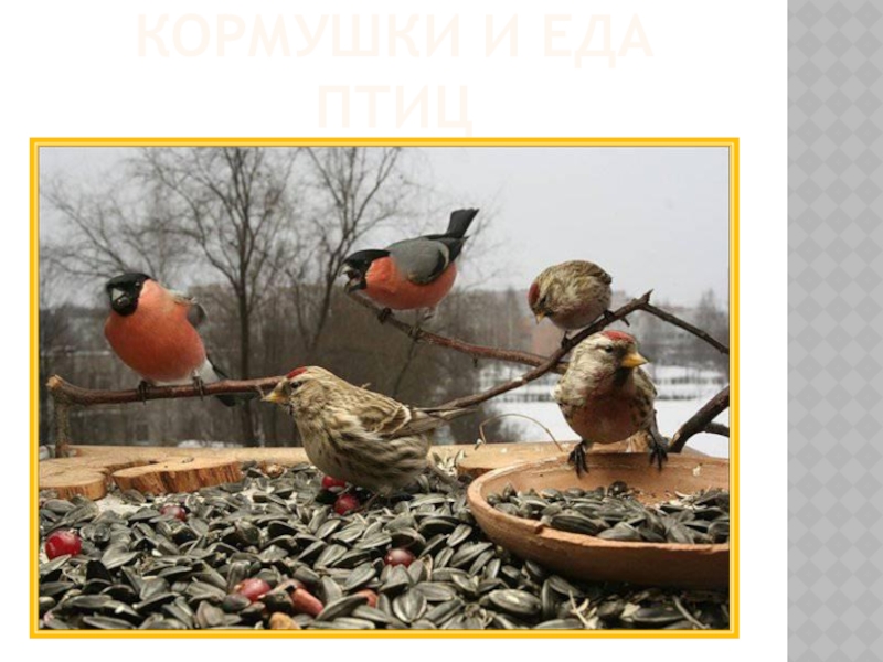 Слайд 5Кормушки и еда птиц