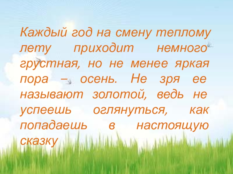 Слайд 2Каждый год на смену теплому лету приходит немного грустная, но не