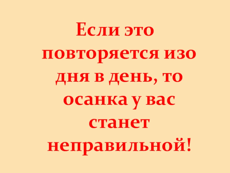 Слайд 13Если это повторяется изо дня в день, то осанка у вас