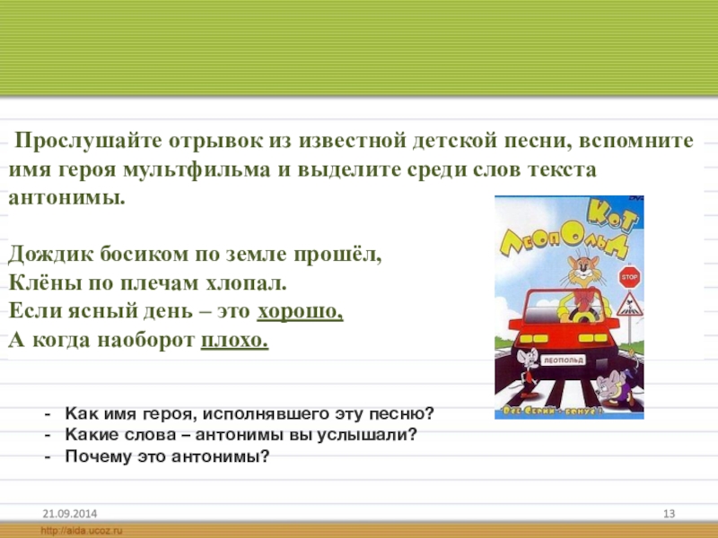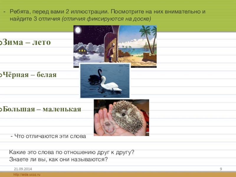 Какие слова – антонимы вы услышали?