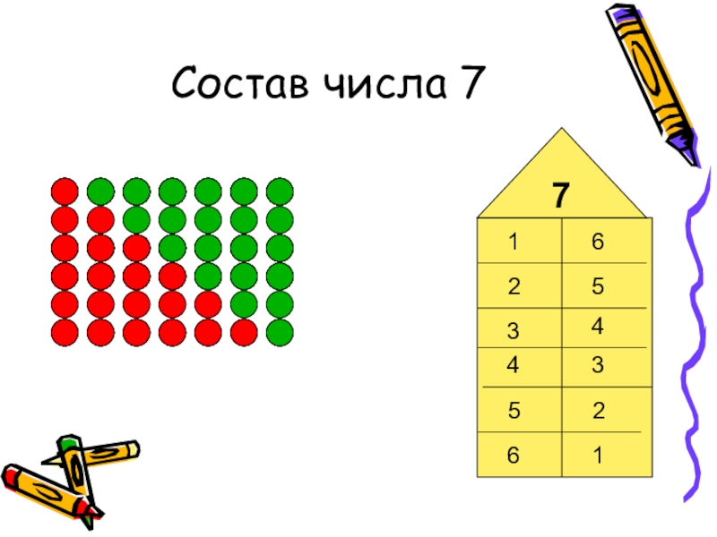 Цель: 1. Познакомиться с числом и цифрой 7  2. Научиться писать цифру 7 3. Выучить состав