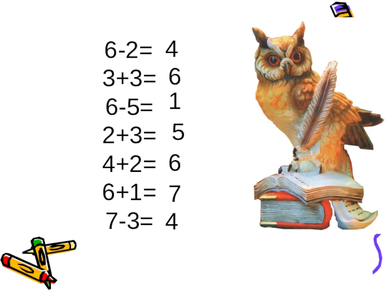6-2= 3+3= 6-5= 2+3= 4+2= 6+1= 7-3= 4615674