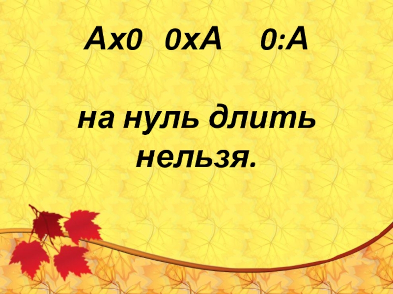 Слайд 27Ах0 0хА 0:А на нуль длить нельзя.